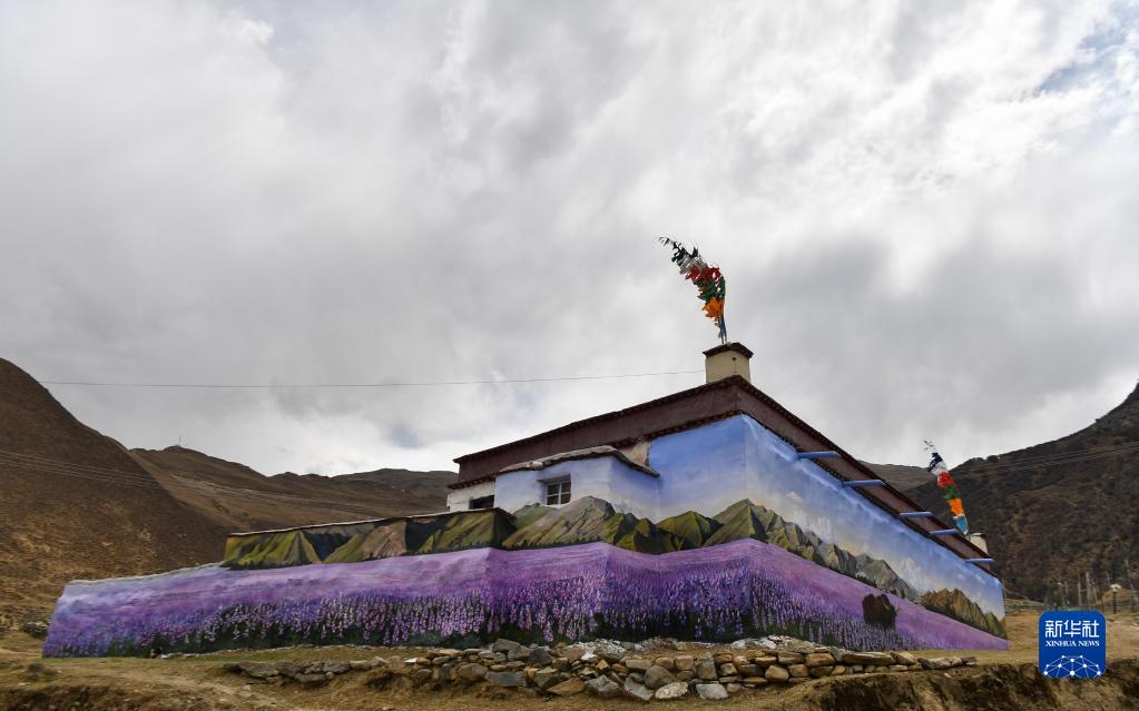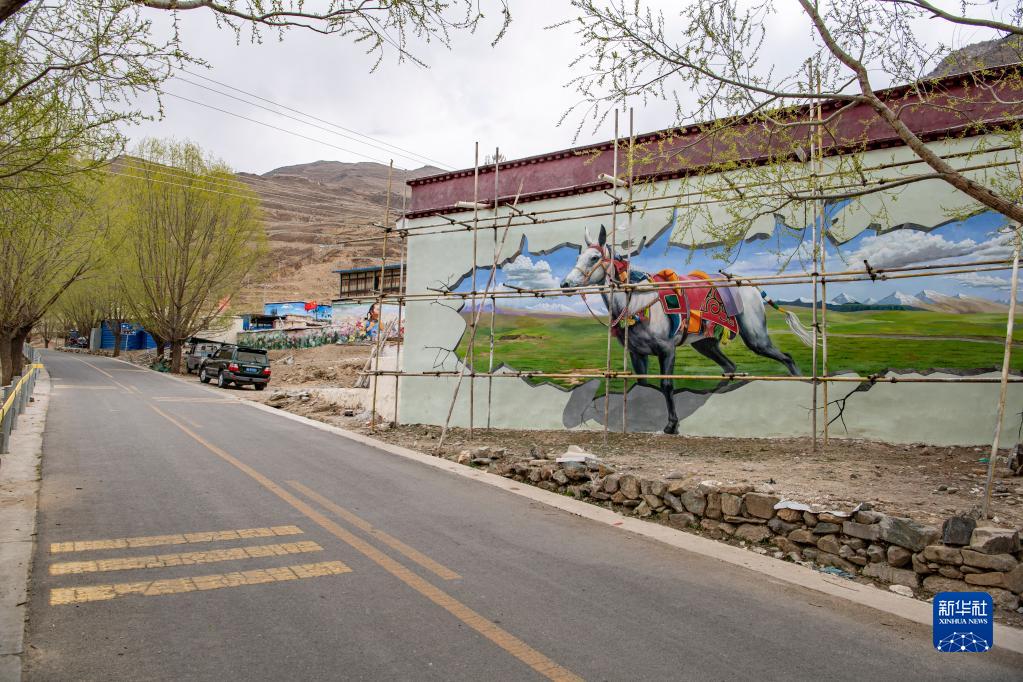 這是4月10日在拉薩市達孜區(qū)章多鄉(xiāng)恰村拍攝的墻畫。新華社記者 晉美多吉 攝