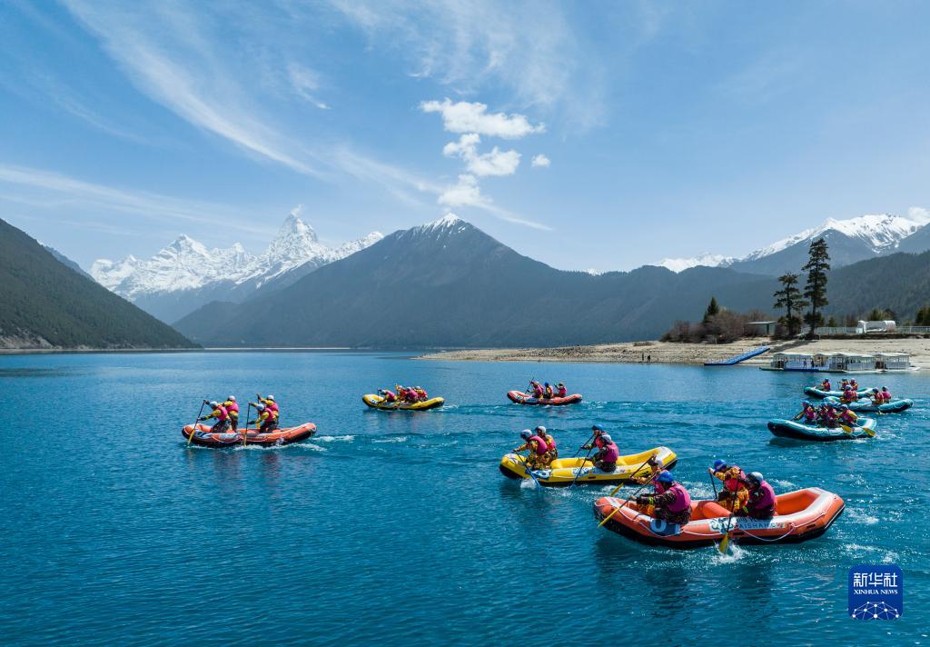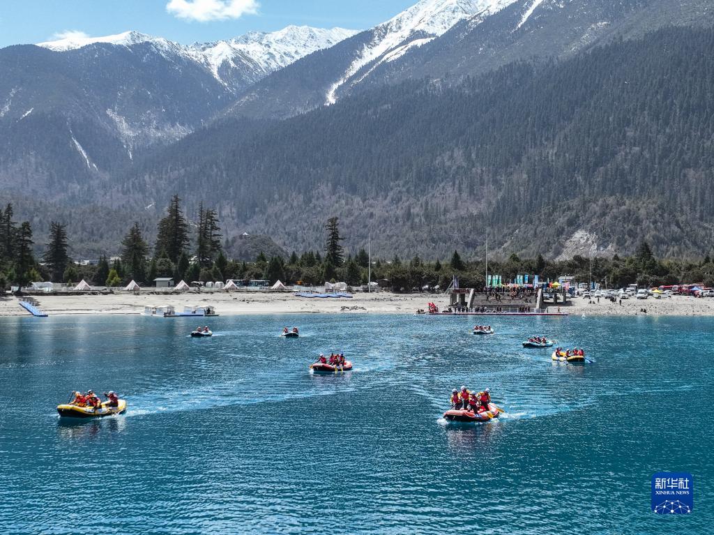 當(dāng)日,2023年阿依舍·中國漂流聯(lián)賽(西藏工布江達(dá)縣站)在西藏林芝市巴松措國家森林公園開賽。