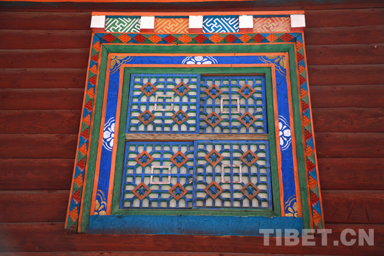 窗戶中的窗飾格、窗套和窗楣等,都是傳統(tǒng)藏式民居特色的體現(xiàn)。窗框?yàn)榉叫?,多為田字形窗扇,現(xiàn)在也有一些是漢式小方格和花格窗扇,裝飾著特色花紋。