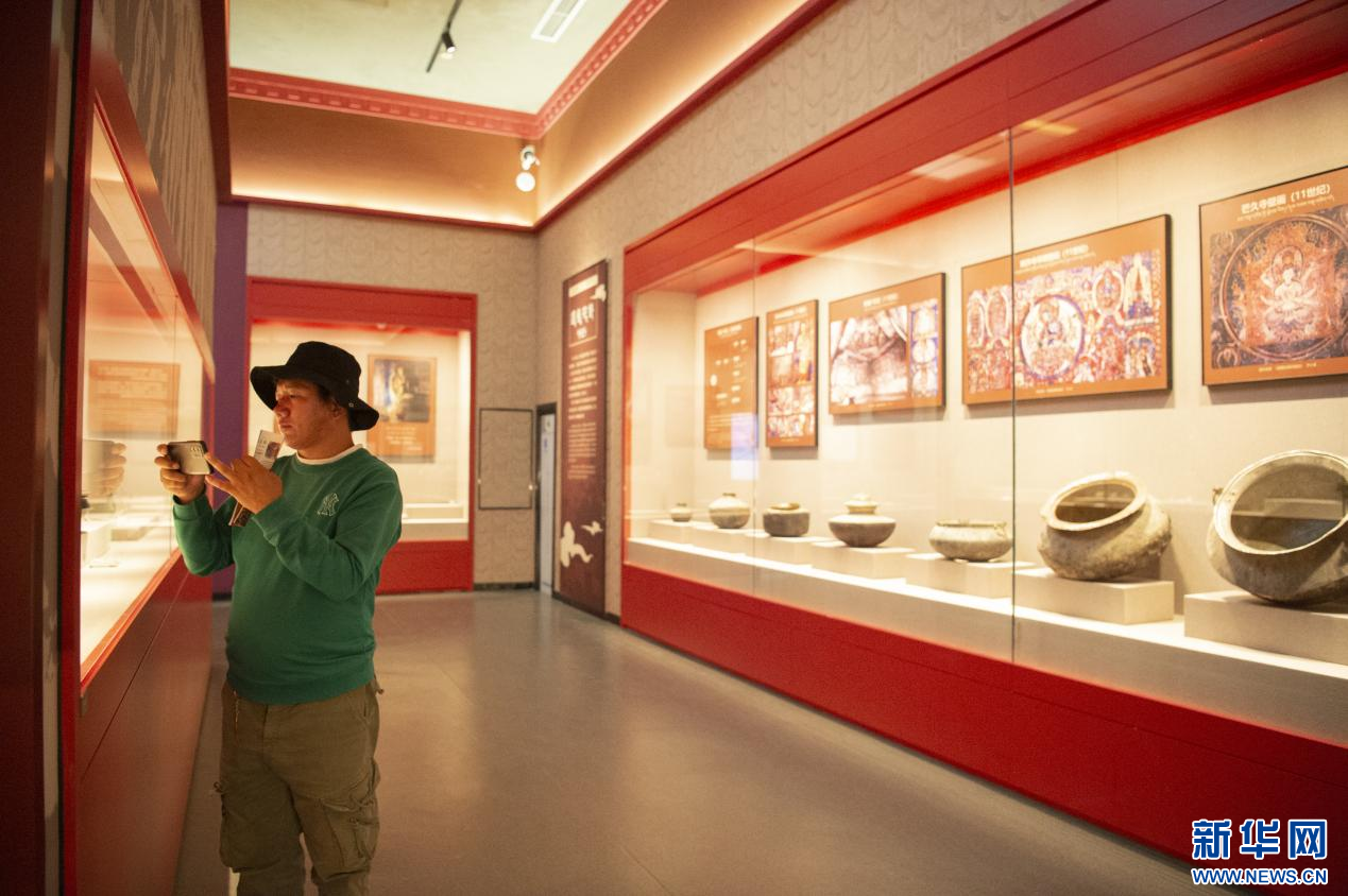 8月23日,一名觀眾在西藏阿里博物館參觀時手機拍照。新華網 旦增努布 攝