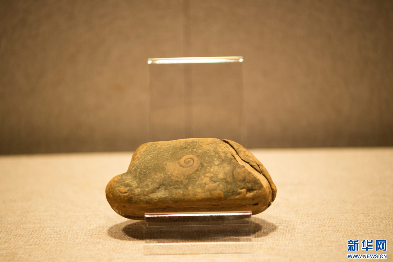 西藏阿里博物館展品“變質巖·含鸚鵡螺化石”(8月23日攝)。新華網 旦增努布 攝
