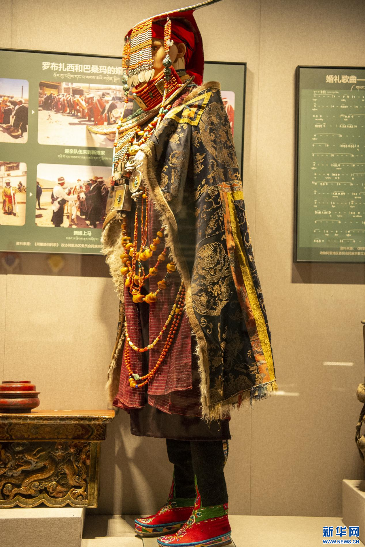 西藏阿里博物館展品,已有1000多年歷史的阿里普蘭縣“孔雀服飾”(8月23日攝)。新華網 旦增努布 攝