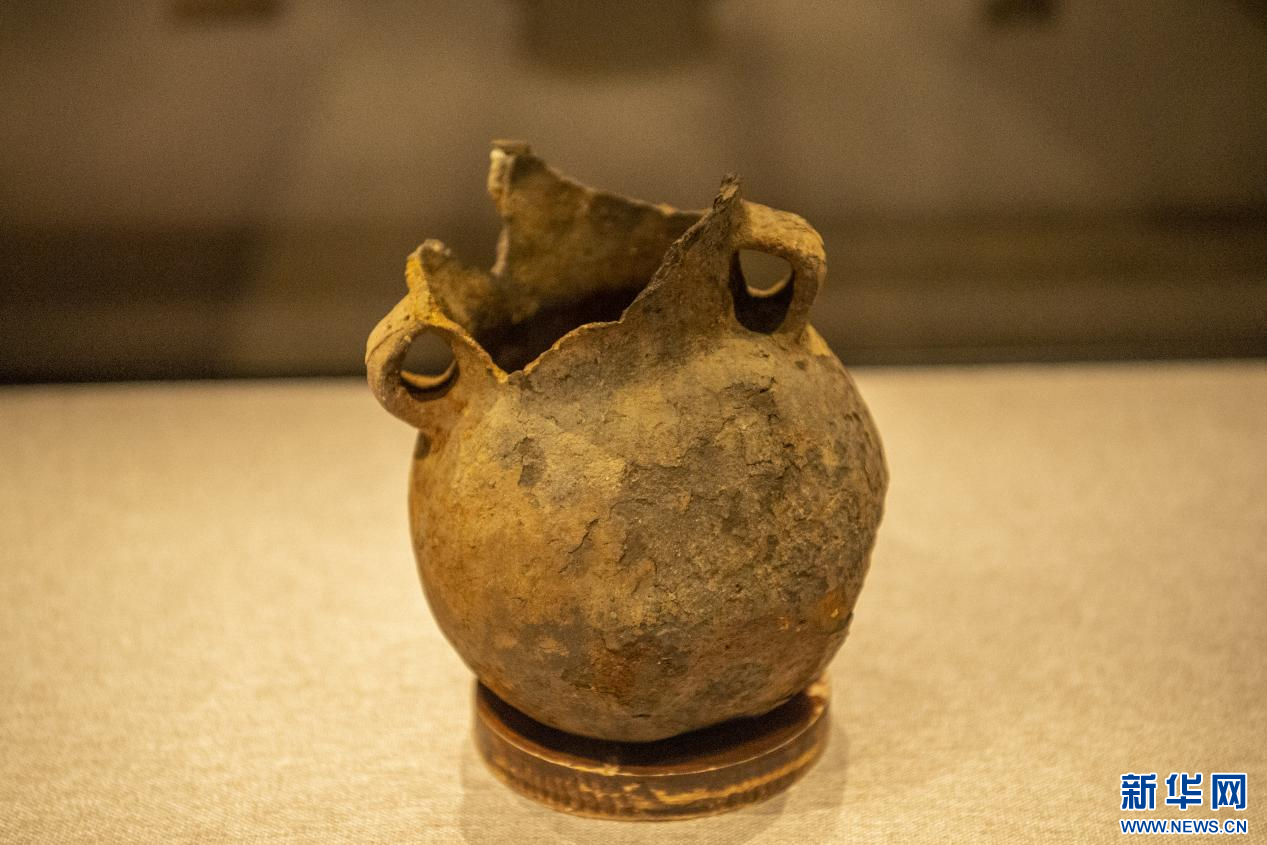西藏阿里博物館展品“雙耳圜底陶罐”(8月23日攝)。新華網 旦增努布 攝