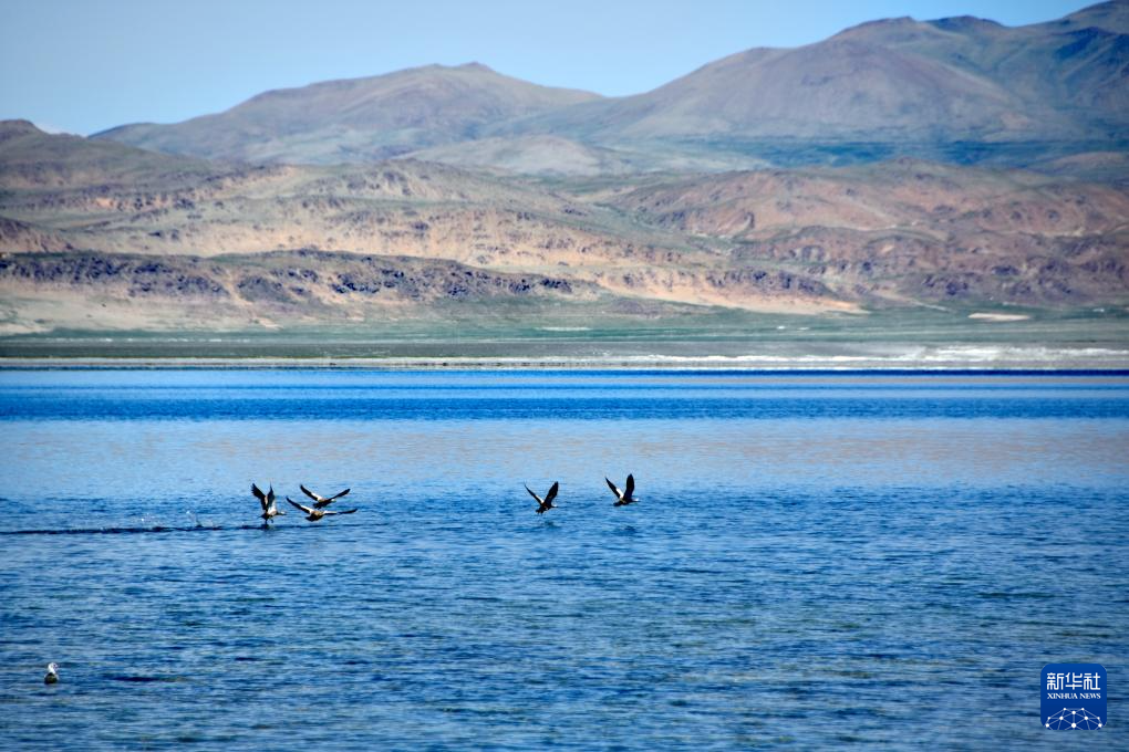 飛鳥從達(dá)瓦錯(cuò)湖面掠過(8月28日攝)。新華社記者 劉文博 攝