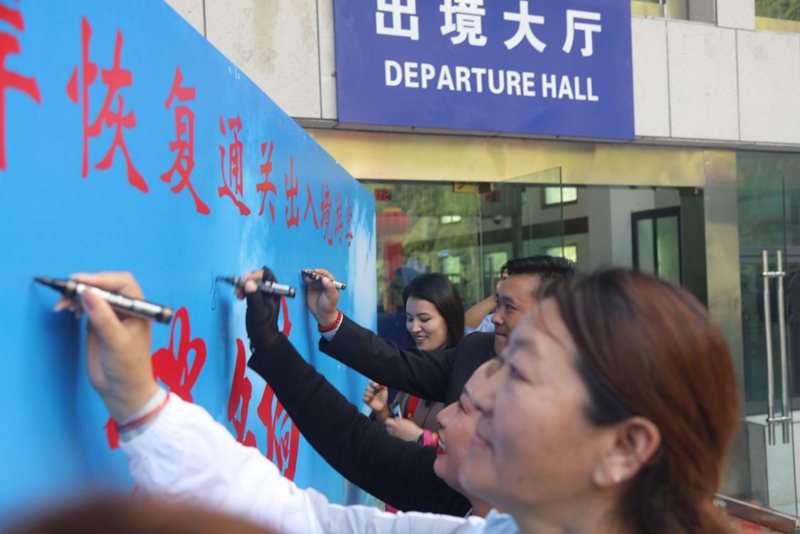 “心情很激動,現(xiàn)在可以從樟木口岸通關了,往來方便多了!”樟木鎮(zhèn)群眾索朗曲珍激動地說。同時,她在國門簽名墻上寫下了“祝祖國繁榮昌盛”的祝福。