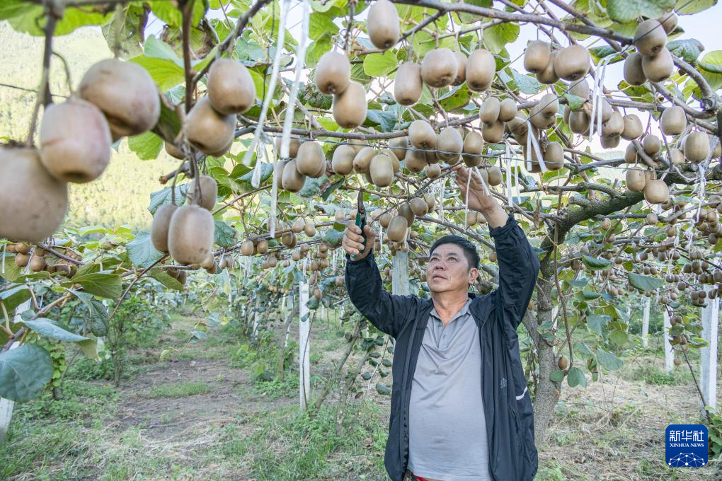 白松在西藏察隅縣下察隅鎮(zhèn)修理獼猴桃枝葉(9月3日攝)。新華社發(fā)(丁增尼達(dá) 攝)