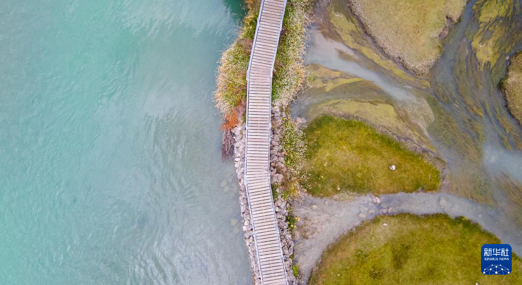 雅尼國家濕地公園管護員在巡護途中(無人機照片,9月8日攝)。新華社發(fā)(丁增尼達 攝)