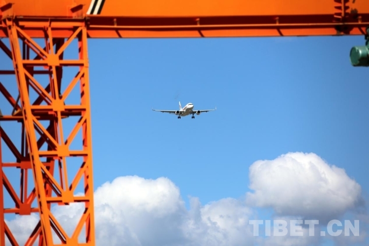 圖為一架西藏航空旗下的飛機(jī)從開工儀式現(xiàn)場上空飛過 攝影:王佳豪