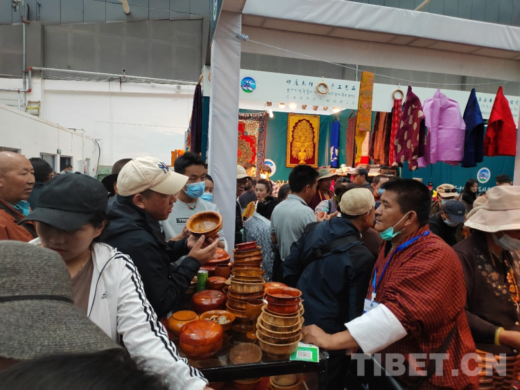 圖為第五屆中國(guó)西藏旅游文化國(guó)際博覽會(huì)展銷活動(dòng)現(xiàn)場(chǎng)市民在選購商品 攝影:次旦拉姆