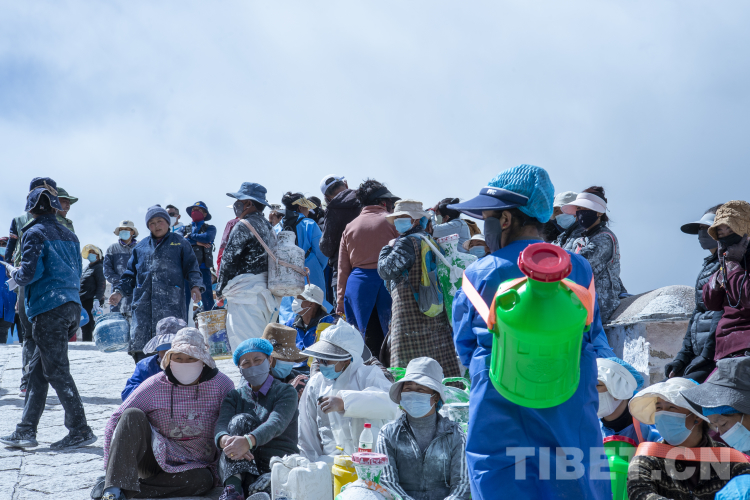 圖為有序運(yùn)送涂料粉刷布達(dá)拉宮的民眾 攝影:德吉卓瑪