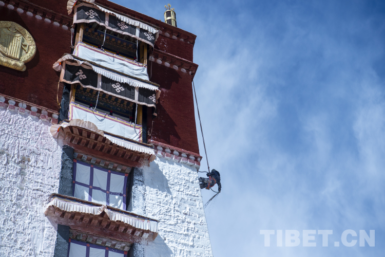 每年藏歷9月,布達(dá)拉宮便開(kāi)啟一年一度的墻體粉刷工程,這也是布達(dá)拉宮例行的“換新裝”。按照慣例,每季粉刷將在藏歷9月22日“神降節(jié)”前完成。