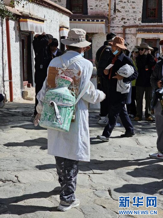 10月18日開(kāi)始,布達(dá)拉宮進(jìn)入了一年一度的“粉刷季”,數(shù)百名群眾自發(fā)來(lái)到布達(dá)拉宮參與到“美容”工作中。這些“美容師”們腰間系著長(zhǎng)繩,像“蜘蛛人”一樣將自己懸在半空,用人工噴灑的方式涂裝布達(dá)拉宮的外墻。
