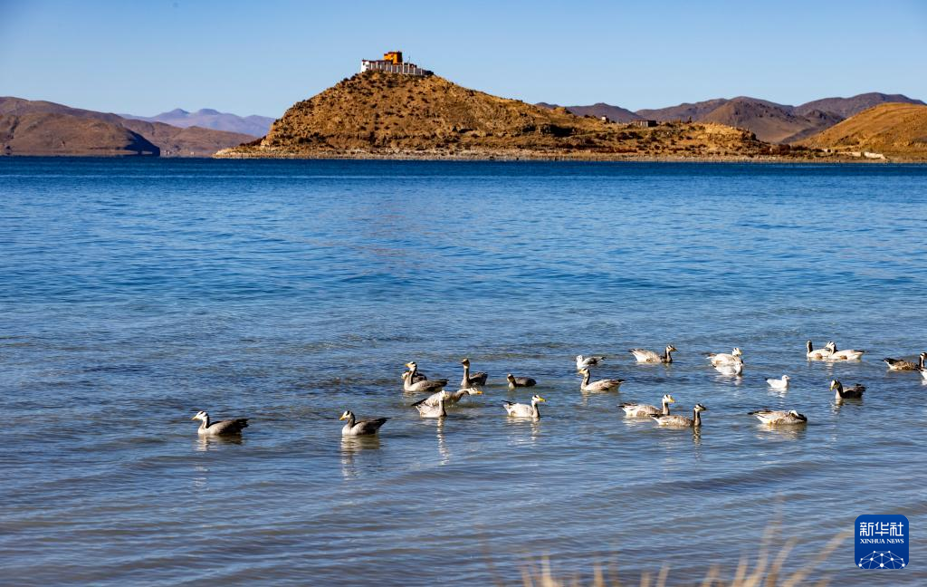 這是10月25日拍攝的羊卓雍錯(cuò)和日托寺。新華社記者 姜帆 攝 ??