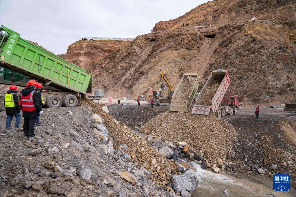 10月31日,施工人員在進行河道截流。新華社記者 孫非 攝