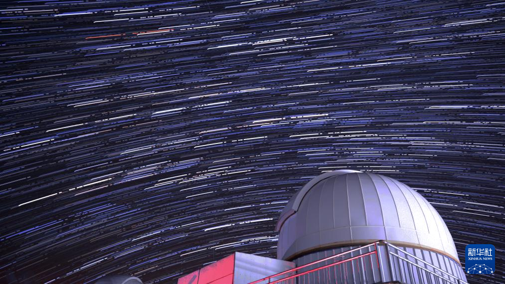這是在阿里暗夜公園拍攝的星軌(堆棧合成照片,11月4日攝)。 新華社記者 聶毅 攝