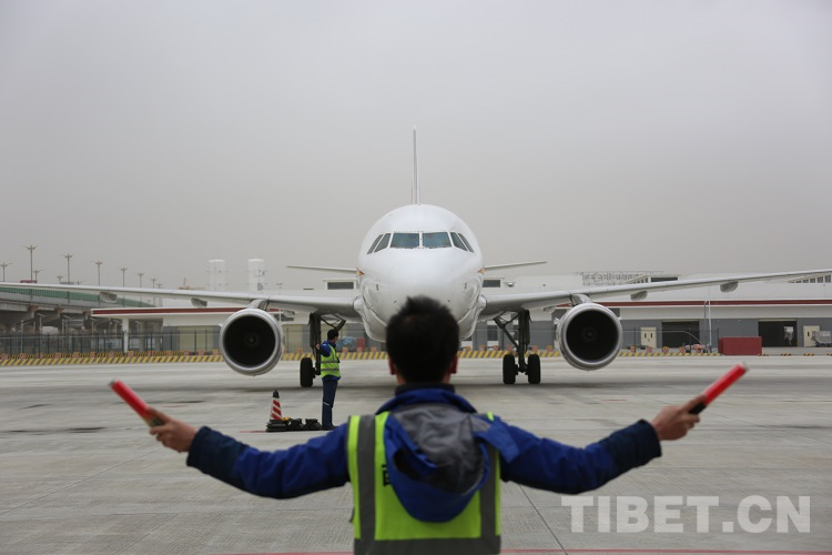資料圖:一架民航飛機抵達(dá)拉薩貢嘎機場