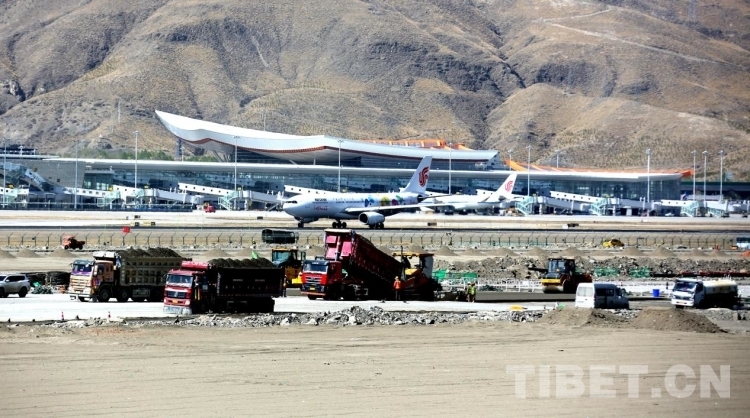 資料圖:今年4月,拉薩貢嘎機場第二跑道建設(shè)現(xiàn)場
