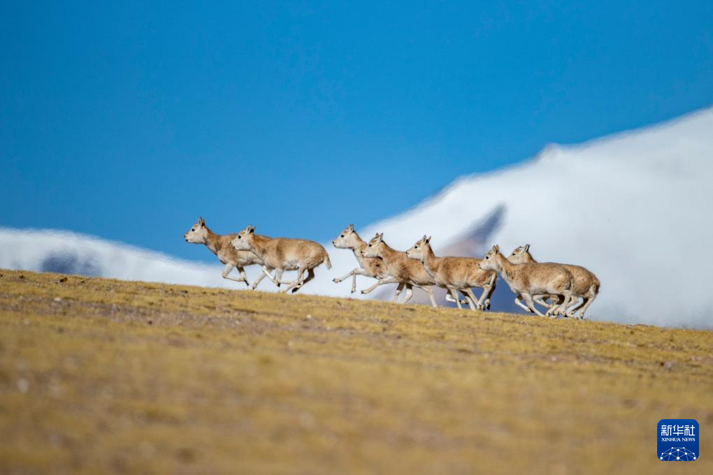 在羌塘國(guó)家級(jí)自然保護(hù)區(qū),一群雌性藏羚羊在奔跑(12月16日攝)。新華社記者 姜帆 攝