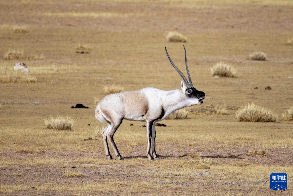 在羌塘國(guó)家級(jí)自然保護(hù)區(qū),一只發(fā)情的雄性藏羚羊在“呼喚”雌性(12月16日攝)。新華社記者 姜帆 攝