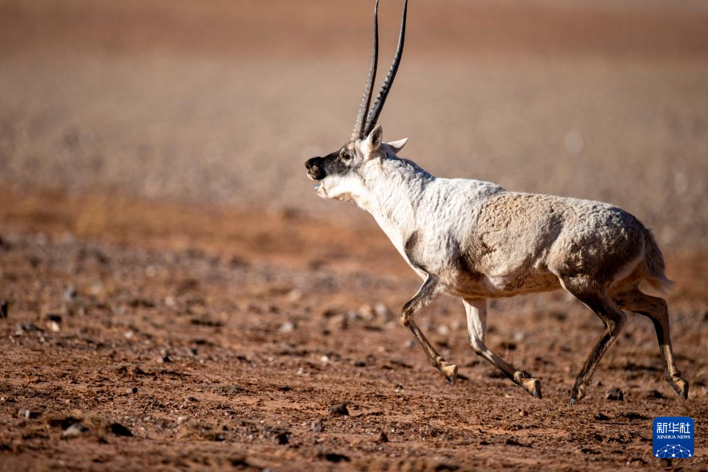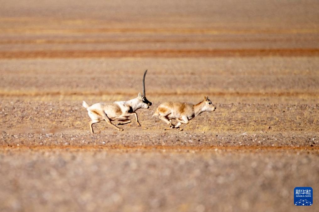 在羌塘國(guó)家級(jí)自然保護(hù)區(qū),一只雄性藏羚羊在奔向雌性(12月16日攝)。新華社記者 姜帆 攝