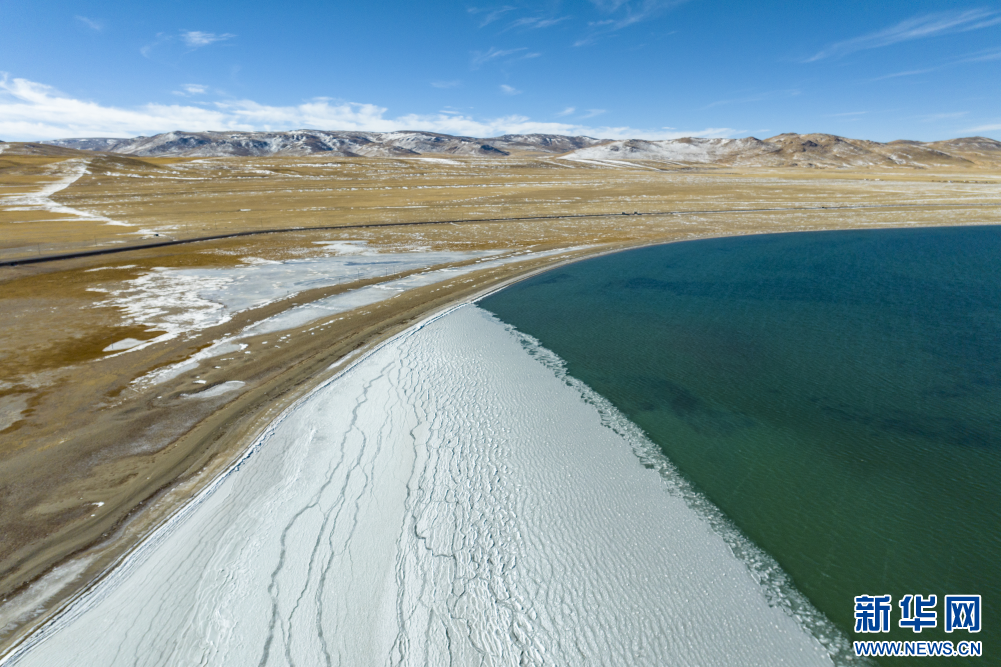 12月15日拍攝的蓬錯(cuò)湖邊(無(wú)人機(jī)照片)。新華網(wǎng) 旦增努布 攝