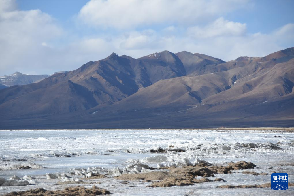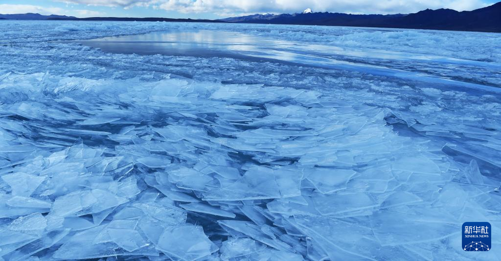 瑪旁雍錯湖面上的冰堆積在一起,形似波浪(1月29日攝)。新華社記者 關(guān)明輝 攝 ??