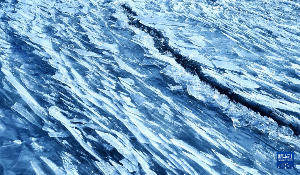 瑪旁雍錯湖面上的冰像碎玻璃一樣透亮(1月29日攝)。新華社記者 關(guān)明輝 攝 ??