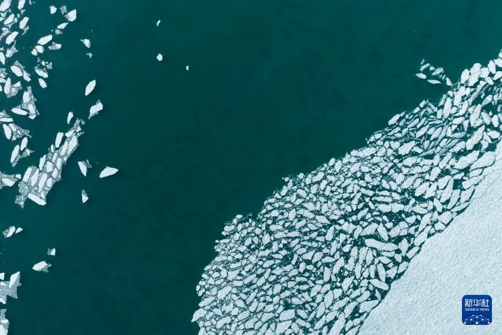 瑪旁雍錯湖面上的冰堆積在一起,呈現(xiàn)出各式各樣的造型(1月29日攝,無人機照片)。新華社發(fā)(旦增努布攝) ??