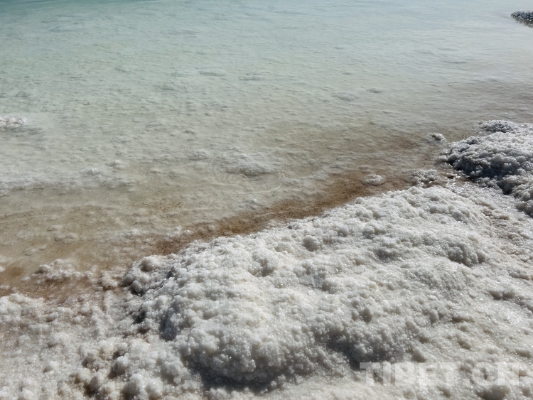 湖岸邊析出的大量鹽晶。李一凡 攝