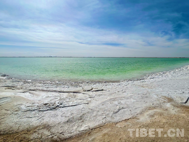 這里是鹽的天堂。湖水是高濃度的鹵水,蘊(yùn)藏著極其豐富的氯化鈉、氯化鉀、氯化鎂等無(wú)機(jī)鹽。厚度近20米的堅(jiān)硬鹽蓋構(gòu)成天然的鹽橋,旁無(wú)護(hù)欄,下無(wú)橋墩,更無(wú)流水。我們的汽車疾馳而過(guò),毫無(wú)顛簸之感。湖岸邊有大量析出的鹽晶,形成厚實(shí)的白色鹽灘,在高原陽(yáng)光的直射下發(fā)出晃眼的白光。(中國(guó)西藏網(wǎng) 文/李一凡 龍真多吉 張萌萌)