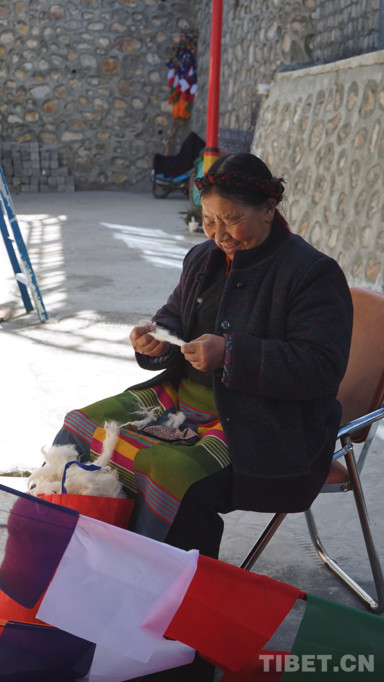 這是我最喜歡的莫啦。住在莫啦家的幾天里,除去采訪、收集素材和寫稿,最放松的時刻就是忙里偷閑和莫啦在廚房烤火、在巷子口曬太陽。莫啦會問我穿得這么少冷不冷,會給我講路過的小女孩有個雙胞胎姐姐,會讓我送熱水給我的同事喝,會拿盛滿卡塞和奶渣的點(diǎn)心盒塞給我吃,會在我想把手頭工作做完再吃飯時問同事我怎么不吃飯。當(dāng)然這些我大多是聽不懂的,有些是德瓊阿佳(莫啦的女兒,拉康社區(qū)婦女主任,同時也是客棧的老板)和達(dá)次哥(這次出差的司機(jī)師傅)翻譯給我的,有些是我倆通過比劃猜到的。