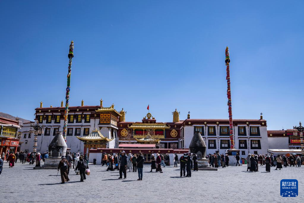 3月14日,拉薩市大昭寺廣場(chǎng)前游人如織。新華社記者 孫非 攝