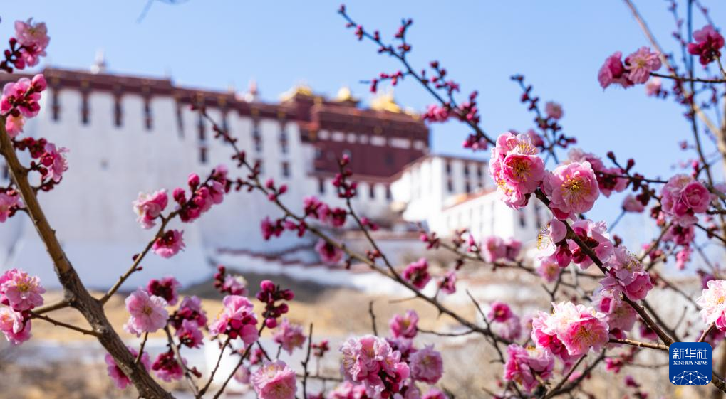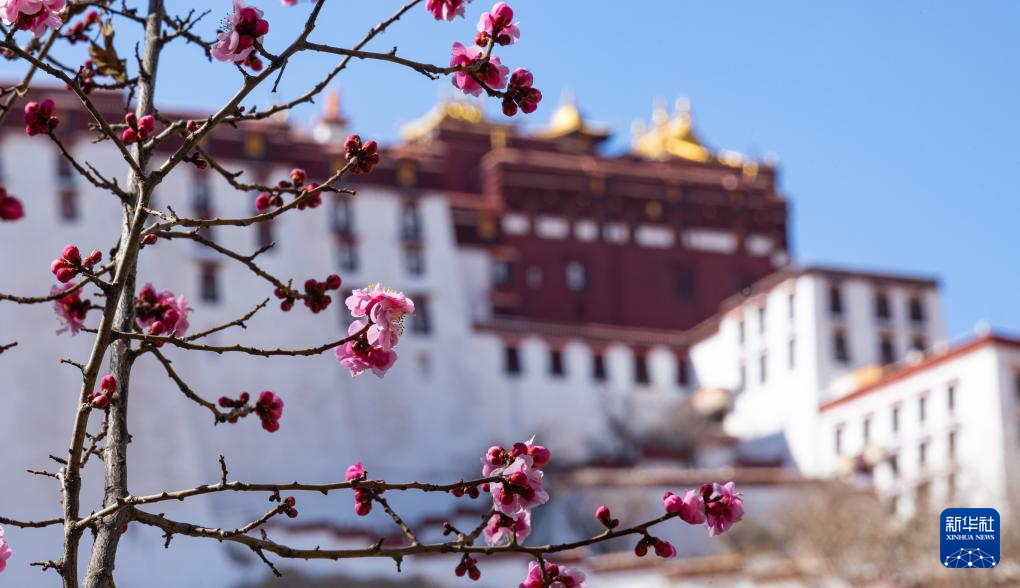 3月14日從拉薩市宗角祿康公園拍攝的春日布達(dá)拉宮一角。新華社記者 丁增尼達(dá) 攝