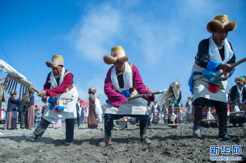 3月16日,克松社區(qū)居民在參加春耕儀式。新華網(wǎng) 旦增努布 攝