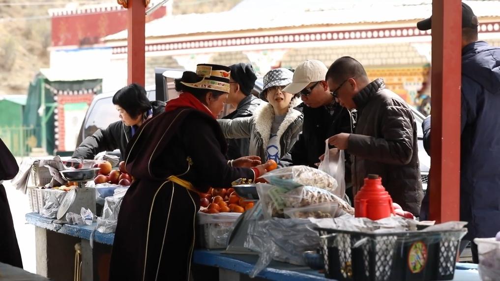 近年來(lái),隨著政府支持力度的不斷加大和林芝旅游的日漸火爆,羌渡崗村的村民們?cè)诩议T口吃上了“旅游飯”。村民們操著一口流利的普通話在水果攤前招攬生意,游人們也在村民的吆喝間購(gòu)入新鮮的水果。