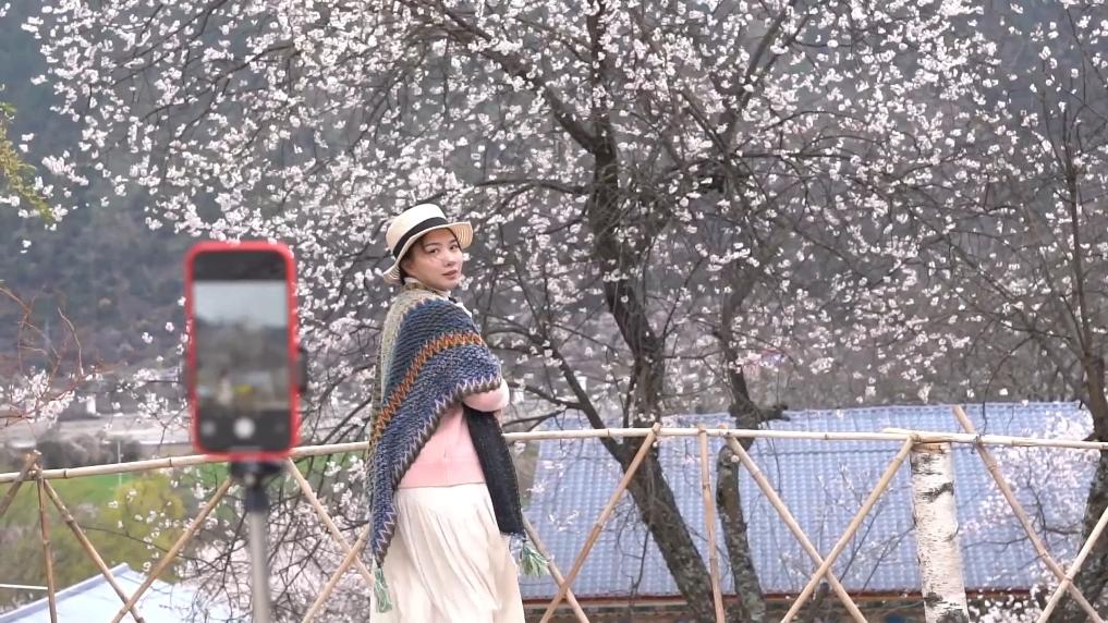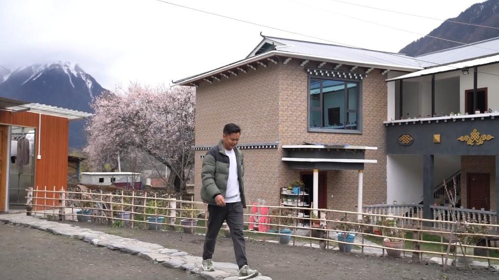 下午4點(diǎn),林芝市波密縣傾多鎮(zhèn)古通村,遠(yuǎn)來(lái)的游客入住到村民洛松頓珠開(kāi)辦的民宿。寬敞的客廳里,藏式家具整齊大氣,窗外古老的桃花樹(shù)隨風(fēng)散落著陣陣花雨。