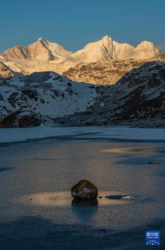 這是在嘎瑪溝拍攝的“日照金山”景象(4月17日攝)。新華社記者 丁增尼達 攝