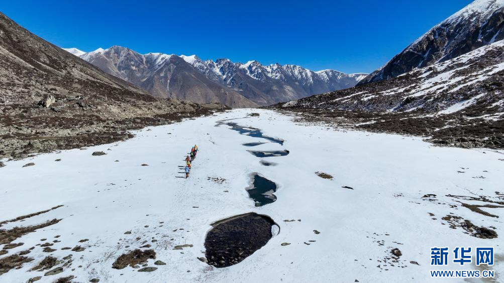 本次行業(yè)沙龍過程中進(jìn)行的嘎瑪溝東坡徒步體驗(yàn)(4月17日攝)。新華社發(fā)