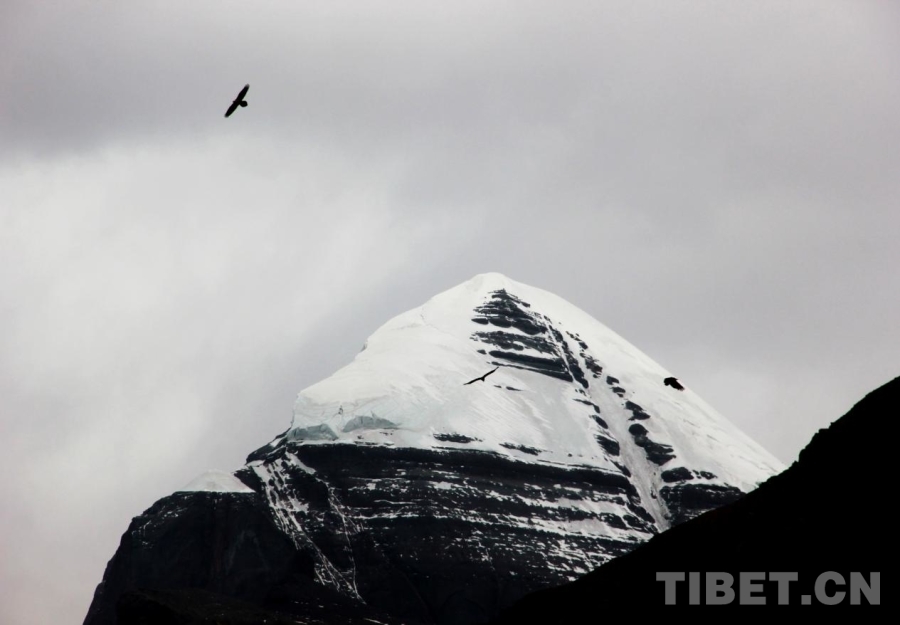 圖為雄鷹飛過(guò)位于西藏自治區(qū)阿里地區(qū)普蘭縣巴嘎鄉(xiāng)的岡仁波齊 攝影:劉莉