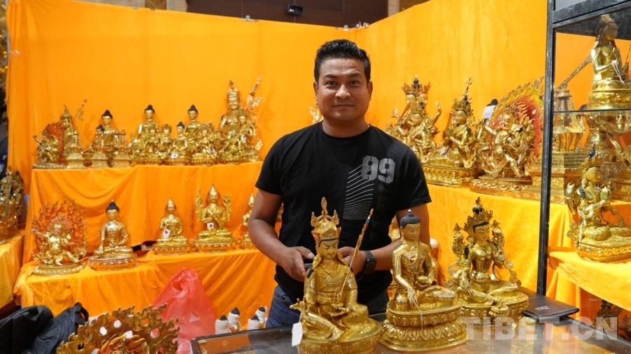 Bikram來自尼泊爾首都加德滿都,十年前來過拉薩,深深被這座城市所吸引,這次通過中外商品展銷會再次來到一直向往的拉薩,他非常開心。“我們尼泊爾的手工藝品在全世界出名,這次我們從尼泊爾帶來的有唐卡、佛像、毛毯等,都是全手工制作的,希望在此次展銷會能夠得到西藏消費者的支持與喜愛?!?/p>