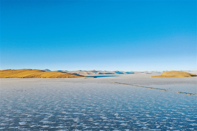 圖為結(jié)冰的山南市浪卡子縣普姆雍錯(cuò)一角。(資料圖片)記者 潘多 攝