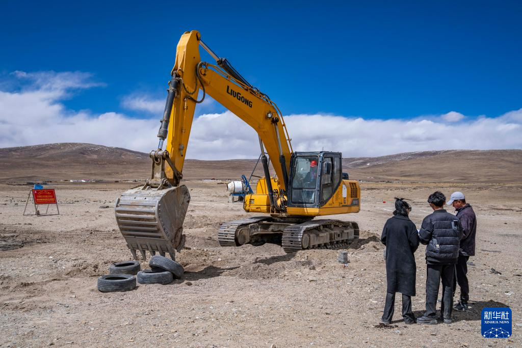 在那曲市聶榮縣尼瑪鄉(xiāng),農(nóng)牧民選手在進(jìn)行挖掘機(jī)操作技能的比賽(5月11日攝)。新華社記者孫非 攝