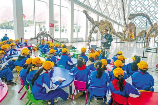 5月18日,在西藏自然科學博物館內(nèi),工作人員向拉薩市第三小學的學生講述西藏的自然歷史。記者 丹增群培 攝
