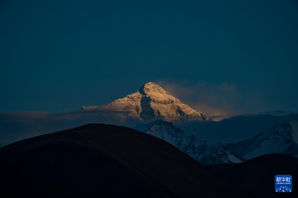 這是在西藏日喀則市定日縣扎西宗鄉(xiāng)拍攝的珠峰夕照(5月19日攝)。新華社記者 孫非 攝