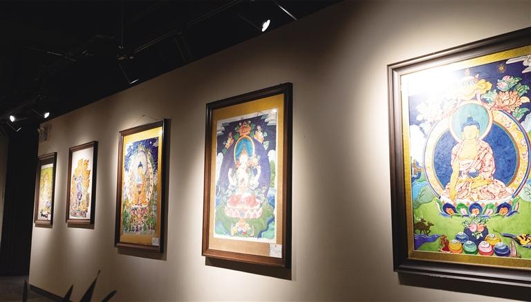 西藏大學(xué)藝術(shù)系研究生格桑感嘆:“看到羅布老師的作品,真的能感受到傳承人的不容易,一幅較大的唐卡需要半年乃至一年的時(shí)間才能完成,花費(fèi)的時(shí)間、精力和心血是無可比擬的?!?/p>