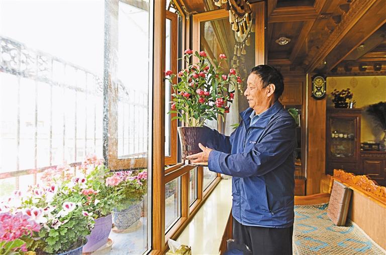 圖為拉薩市城關(guān)區(qū)加榮棚戶(hù)區(qū)小康安居園的居民拉瓊正在家里侍弄花草。 記者 蔣蓋 攝