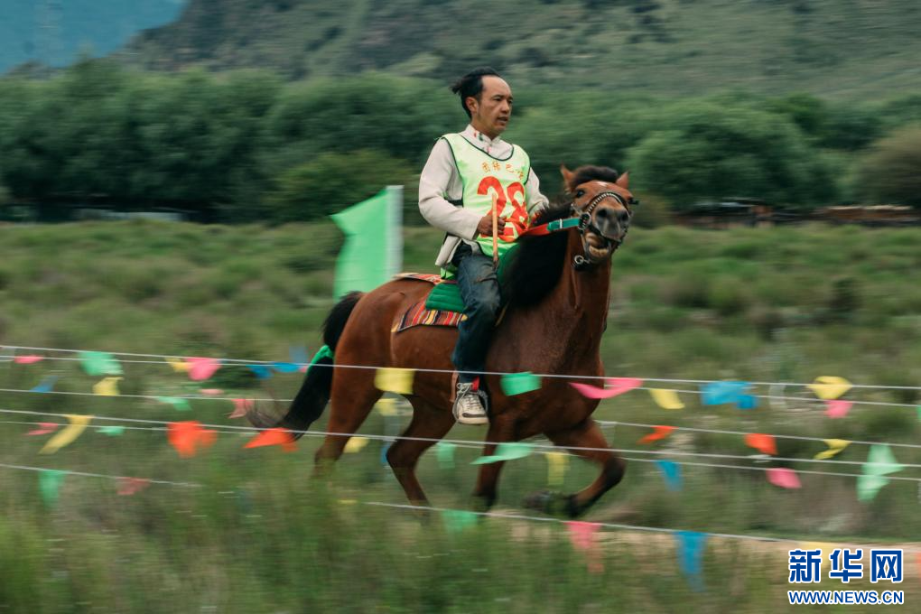 西藏林芝市林芝鎮(zhèn)第七屆尼洋旅游文化之民俗賽馬藝術節(jié)活動現場(7月22日攝)。新華網 旦增努布 攝
