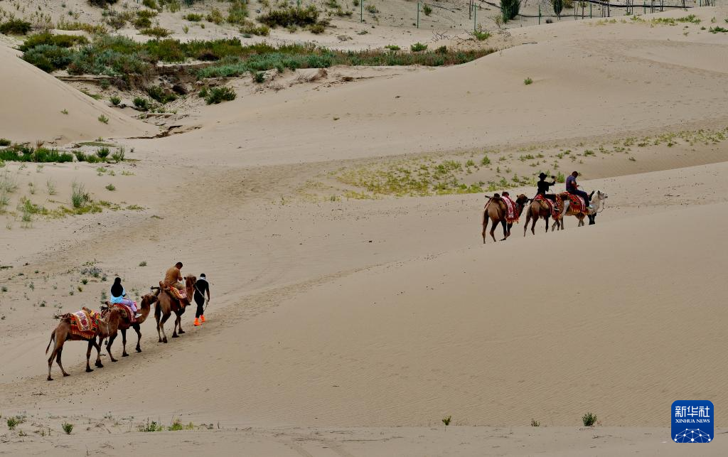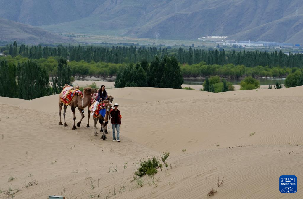 游客在扎囊國家沙漠公園里騎駱駝(7月30日攝)。新華社記者 張汝鋒 攝