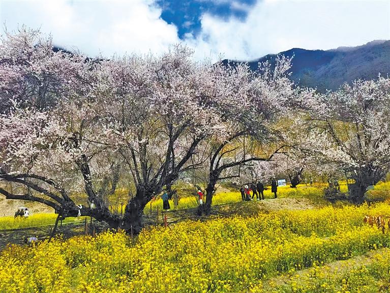 游客在嘎拉村桃花園游玩。 通訊員 王顯琴 攝