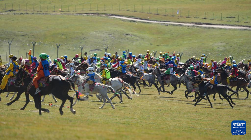 12日,10公里傳統(tǒng)大跑項(xiàng)目開賽,上百匹駿馬在草原上揚(yáng)蹄疾奔,騎手多是十來歲的少年。15歲的普扎巴從6歲開始做騎手,曾騎著當(dāng)?shù)卦S多名馬到各地參加比賽,拿過多次冠軍?!拔蚁嘈胚@次也能拿第一名?!?0日,他在馬背上對(duì)記者說。